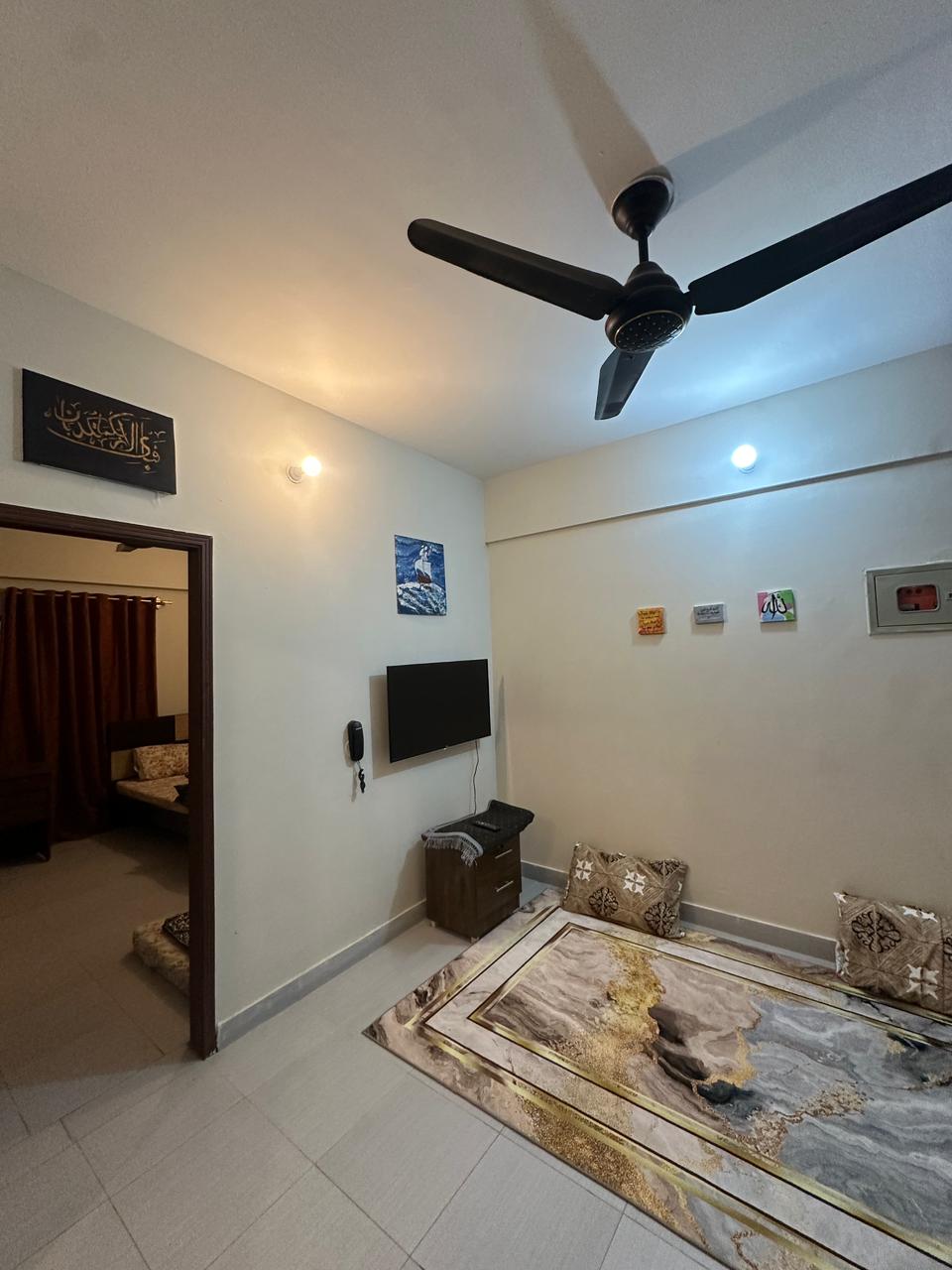 Apartamento tranquilo y seguro ubicado en Malik Society, Gulzar-e-Hijri, una de las zonas residenciales sin riesgos de la ciudad. Cerca del centro comercial Lucky One, los principales hospitales, universidades, gimnasios y restaurantes. Ideal para familias, estudiantes y profesionales. El apartamento cuenta con una configuración limpia y acogedora con respaldo de energía solar en caso de corte de carga. Ubicación bien comunicada con fácil acceso al transporte y a todos los elementos esenciales diarios. Perfecto para estadías cortas o largas.