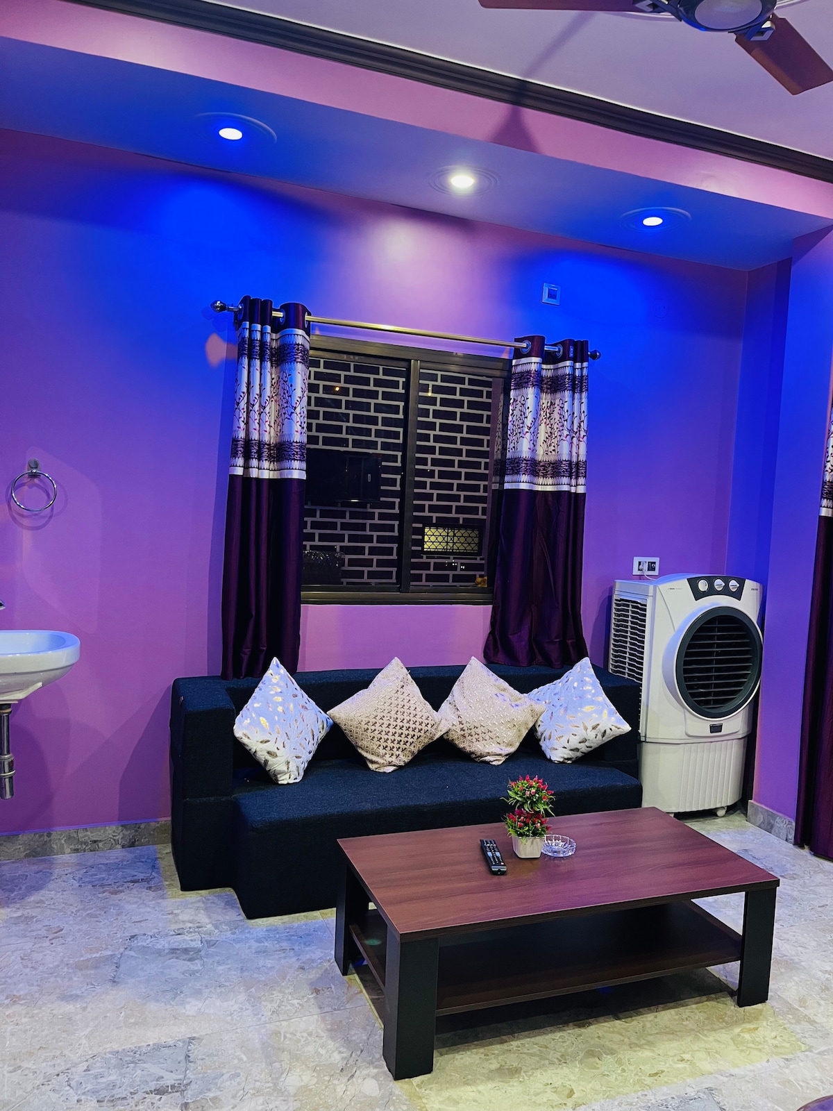 ✨Departamento moderno completo de 1 habitación y 1 baño en el centro de Varanasi, en una zona residencial segura y tranquila, lejos del caos del tráfico y rodeado de espacios abiertos. Ofrecemos transporte local confiable (auto o toto) las 24 horas a un costo razonable, bajo petición y en la puerta de tu casa, para tus visitas. ✨ Alójate con comodidad y estilo en nuestro apartamento cuidadosamente diseñado, a solo 10 minutos en auto de Assi Ghat, el corazón cultural y espiritual de Varanasi. Ideal para familias, amigos o grupos pequeños de hasta 4 huéspedes.