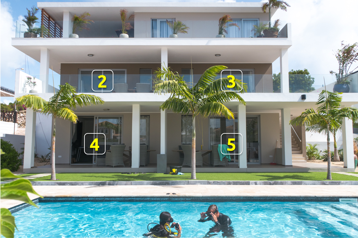 Villa Yazmin is een mooie nieuwe oceaanfront villa dus je leeft pal aan zee. villa_yazmin_curacao follow us Er is een piano aanwezig voor de liefhebbers, hoe heerlijk is het om in deze setting piano te spelen. Het is een magnesium zwembad dus goed voor je lichaam en geen chloor. Iedere kamer heeft zijn eigen badkamer en er is een aparte gastentoilet. De keuken is met alles uitgerust zo kan je makkelijk je cappuccino maken of een kopje thee is zo gezet met de quooker.