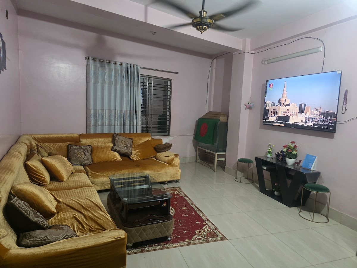 Es un apartamento independiente totalmente amueblado, de 1300 pies cuadrados. Ubicado en la zona aristocrática de Iqbal Road, Mohammad Pur. 3 camas, 3 baños, comedor, sala de estar, cocina, área de servicio, vajilla, utensilios, balcón, jardín en la azotea, ascensor. Guardia de seguridad 24/7 y cámara de circuito cerrado. Cerca de Chondrima Uddan y del Parlamento Nacional. Zona muy tranquila.