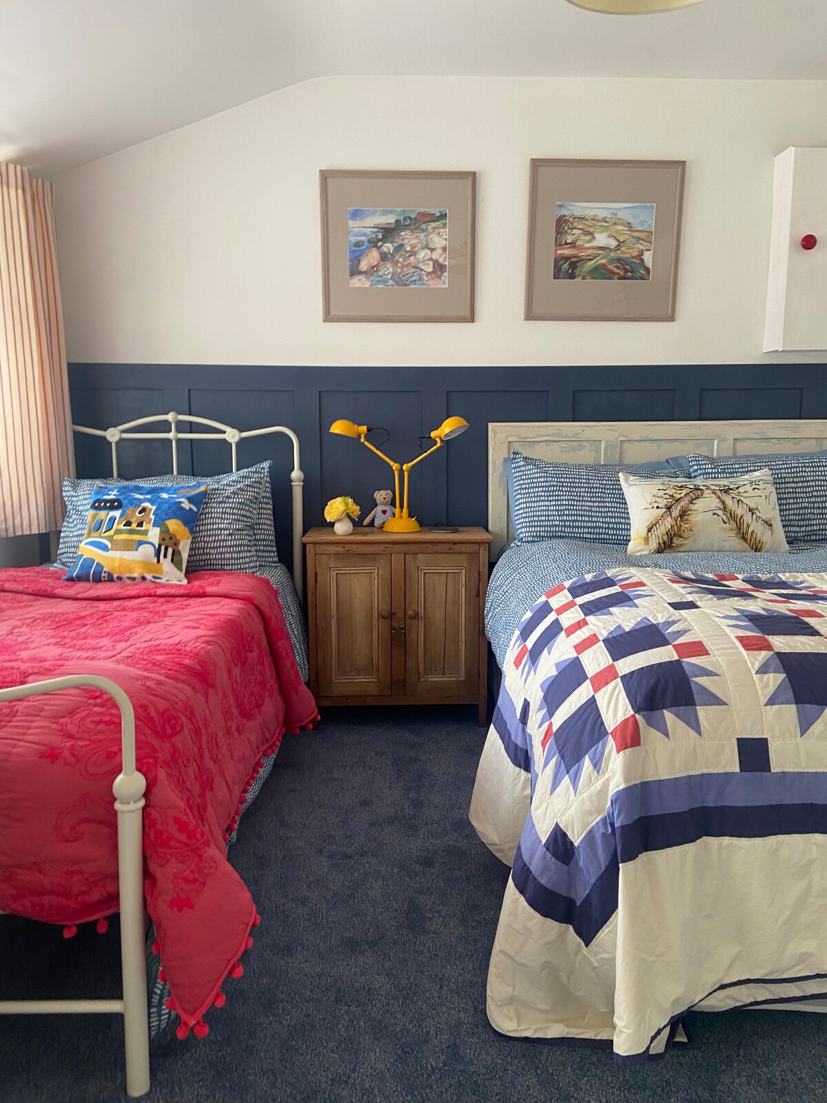 La casa de campo está en un campo tranquilo con campos circundantes y mucho aire marino. Hay una tienda local a tiro de piedra y la playa está a solo 5 minutos. Puedes oler el aire del mar y simplemente escuchar la naturaleza. La casa de campo es clásica y contemporánea, con lujo y comodidad pura para satisfacer tus necesidades. Hay un jardín de buen tamaño para relajarse y también hay una cama elástica de 13 pies para dar un pequeño salto y sentirse joven. Lo que más me gusta es la comodidad y la tranquilidad del campo.