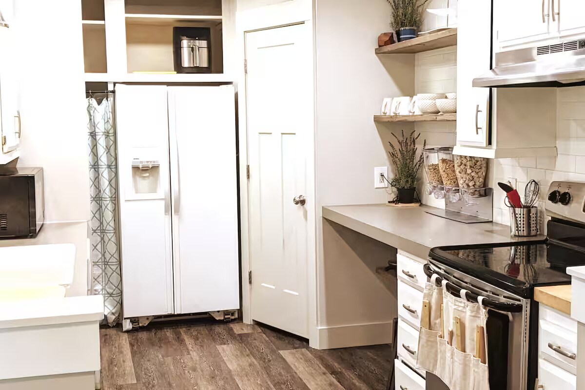 Reúne a todos en esta casa de huéspedes privada diseñada para estadías inolvidables en grupo. Con una sala de juegos, tres cocinas totalmente equipadas y múltiples espacios de estar, tu grupo puede reunirse cómodamente mientras disfruta de la privacidad. Excepcionalmente limpio y bien abastecido con extras cuidados en todas partes. Perfecto para reuniones familiares, retiros y grupos grandes. Ubicado en el centro, cerca de rutas de senderismo y ciclismo. 7 camas tamaño queen, 2 camas individuales, 3 sofás futones