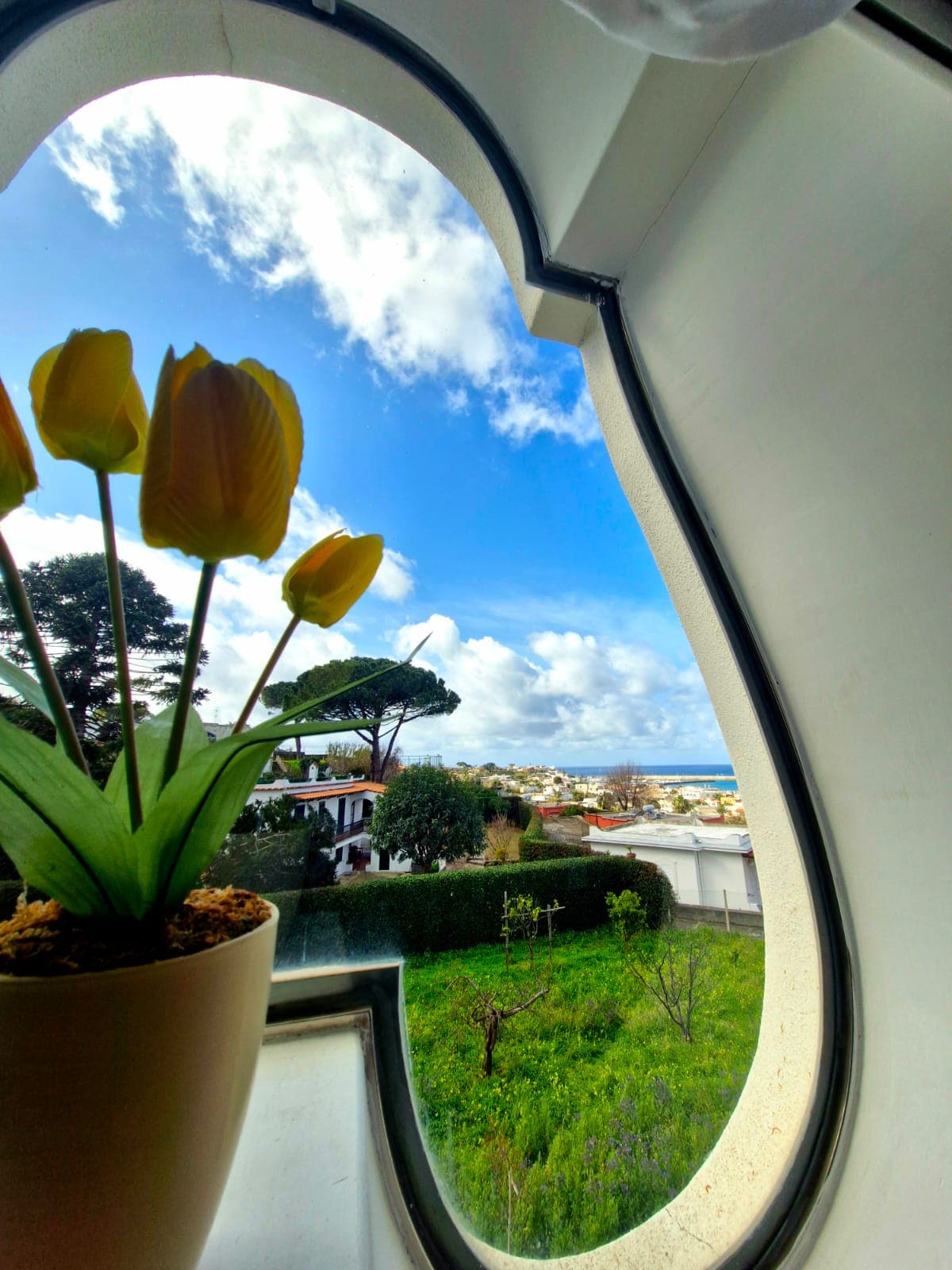 Casa Amena, suspendida entre el cielo y el mar, ubicada en la colina de “Neso” (Oneso) con vistas a la ciudad de Lacco Ameno, famosa en todo el mundo por sus aguas termales. Está cerca de la antigua Villa Zavota, que ahora se conoce como Villa Parodi Delfino. Giuseppe Garibaldi, se quedó allí en 1884 para recuperarse con la ayuda de las aguas termales de las heridas sufridas durante la batalla de Aspromonte. Nuestra casa ofrece apartamentos pequeños, completamente amueblados adecuados para familias. - sala de estar equipada con un rincón de cocina. - dormitorio principal - baño espacioso con ducha. - Jardín mediterráneo: césped/ solárium/barbacoa, huerto, árboles frutales, árboles cítricos y viñedo de más de 2000 m2. El mobiliario es funcional, moderno y bien cuidado - La cocina está totalmente equipada para preparar tu propio desayuno u otras comidas. - Aparcamiento disponible para motocicletas y automóviles. - Nuestra casa está en un lugar muy tranquilo, sin embargo, está a solo 5 minutos a pie de la ciudad de Lacco Ameno, con sus spas termales, tiendas, playas, el puerto deportivo y los museos. También está cerca del puerto principal de Casamicciola. ¡Andrea Mennella está aquí para darte la bienvenida!