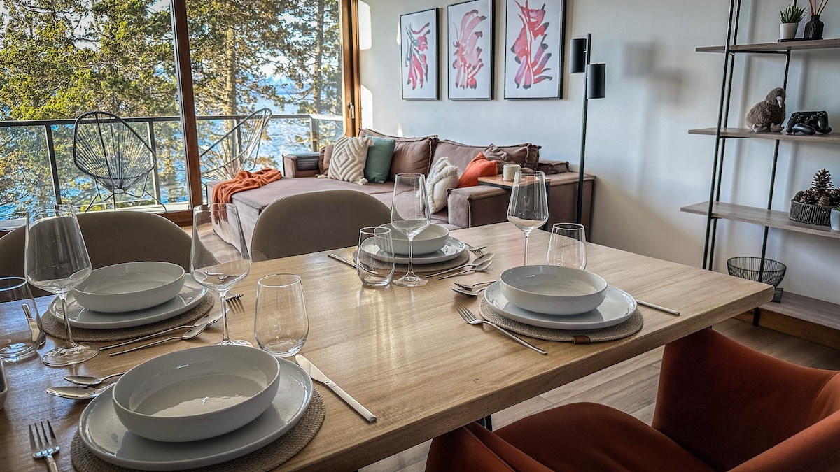 Relajate en este departamento único y tranquilo en pleno centro de Bariloche. Con vistas al lago desde todos los ambientes, combina diseño moderno, calidez y mucha luz natural. Cada rincón fue pensado para que disfrutes una estadía cómoda y especial. ¡Te va a encantar! Estacionamiento a 250 mts del departamento. Parking con seguridad 24hrs (Incluido en la tarifa)