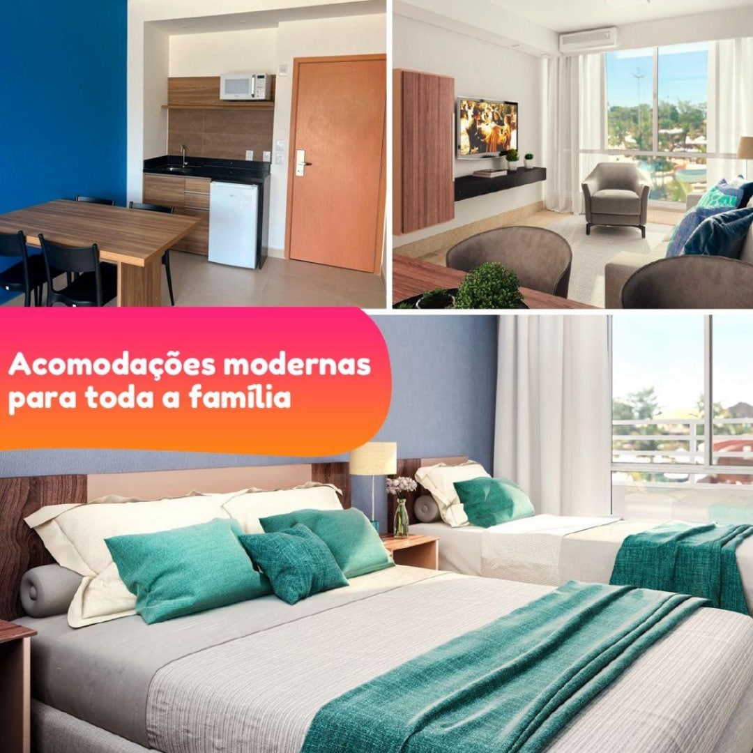 Oferecemos hospedagem no São Pedro Thermas Resort Quarto planejado para oferecer conforto e aconchego, ideal para relaxar após um dia de diversão! Conta com 2 camas super confortáveis (1 casal e 1 solteiro), sala de estar moderna com TV, banheiro com ducha quente e mesa com 4 cadeiras para refeições no próprio quarto. Importante: não fornecemos kit mesa posta (pratos, copos e talheres) e a voltagem é 220V. O Resort é cheio de atrações e atividades para o dia todo!