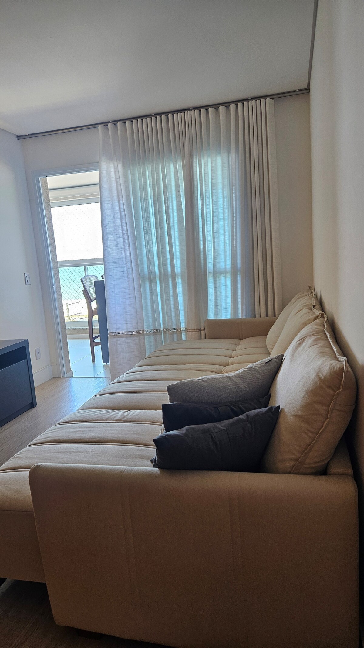 Hermoso apartamento a pie de playa con acceso exclusivo a la playa. Ofrece comodidad para hasta 5 personas, totalmente equipado con un estilo moderno y único. Gran ambiente familiar con muchas opciones de ocio: Piscina infinita y jacuzzi Piscina infantil Bar húmedo Piscina termal Solarium Sala de juegos Sauna Estudio de Fitness y Pilates Pistas deportivas Cine Espacio Kids y Playground Espacio Gourmet y Salón de Fiestas Espacio Pet Estacionamiento Acceso al Parque Beto Carrero en 15 min. Se admiten mascotas