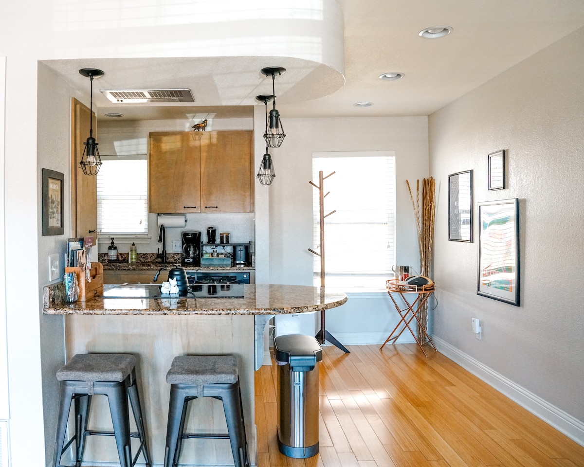 Mira la televisión en un lujoso sofá de terciopelo en la sala de estar contemporánea de este apartamento en el segundo piso. Las plantas frondosas, una colorida alfombra y los cojines aportan un ambiente hogareño al relajante esquema de color gris y azul. La cocina está totalmente modernizada. Este apartamento recientemente renovado, luminoso y fresco, es una unidad final de segundo nivel tranquila con muebles bien equipados en todas partes. Al acercarte a la puerta principal, encontrarás un gran y espacioso patio cubierto al aire libre. Hay cómodos asientos en el salón y un comedor de bistró al aire libre donde podrás relajarte. Al entrar en el apartamento a través de las puertas francesas del patio, un mobiliario elegante y contemporáneo te da la bienvenida en la sala de estar. Con amplios asientos, es el lugar ideal para descansar y relajarse. El lujoso sofá de terciopelo es el lugar perfecto para ver tus programas de televisión favoritos o una película en el televisor de pantalla plana. Además, accede a Internet inalámbrico de alta velocidad en todo el apartamento por negocios o placer. Mi casa tiene capacidad para cuatro personas, ya que el sofá se convierte fácilmente en un colchón tamaño queen. La cocina tiene acabados de primera calidad con encimeras de granito y electrodomésticos de acero inoxidable y está totalmente equipada para que disfrutes cocinando. Es fácil abastecer tu nevera con aperitivos saludables en Whole Foods, a solo 3 manzanas de distancia. Al fondo de la sala de estar se encuentra la suite principal privada de un dormitorio. Disfruta de una gran noche de sueño en la cómoda cama tamaño queen con sábanas blancas frescas. El armario es amplio y tiene un práctico tocador incorporado, que contiene artículos de aseo adicionales, toallas y sábanas. El baño de la habitación tiene características de alta gama: un gran lavabo de porcelana blanca, un tocador adicional para maquillaje y una ducha de efecto lluvia que le dan una sensación de lujo. Hay 1 plaza de aparcamiento reservada para ti en el complejo de apartamentos. También hay aparcamiento adicional para huéspedes. Se proporcionará un código individual único a cada huésped para acceder a la puerta principal segura. A menudo estoy de un lado para otro, sin embargo, siempre estoy disponible para ayudar. ¡Estoy deseando leer tus comentarios sobre tu estancia y tu tiempo en Austin en el libro de visitas proporcionado en el apartamento! El apartamento está situado en una calle tranquila en la zona centro de Clarksville, a una manzana de las tiendas y restaurantes de West 6th Street. También hay parques junto al río y lugares que albergan eventos del festival Austin City Limits y SXSW. Uber y Lyft están disponibles, así como otras excelentes alternativas como Fasten y Austin Ride Share que pueden recogerte en minutos. Si no quieres alquilar un coche o ir a pie, zipCar y Car2Go son servicios de vehículos compartidos que tienen múltiples ubicaciones por la ciudad. También hay muchas estaciones de bicicletas por la ciudad, donde puedes recoger y dejar las bicicletas entre usos. Solo tienes que buscar B-cycle Austin para obtener más información.