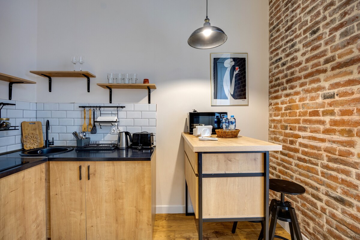 Se trata de un cómodo apartamento renovado con ladrillo visto y auténtico toque tiflisí. Este estudio tiene un baño transparente con bañera moderna, cama tamaño king, sofá Chesterfield, etc. El espacio tiene capacidad para 2 personas y se encuentra en una calle peatonal histórica. Internet wifi de alta velocidad e IPTV (canales internacionales) se proporciona de forma gratuita. El apartamento también está bien situado para el transporte: el metro Marjanishvili y las estaciones de autobús están a poca distancia a pie y te llevan a cualquier lugar de Tiflis en poco tiempo.