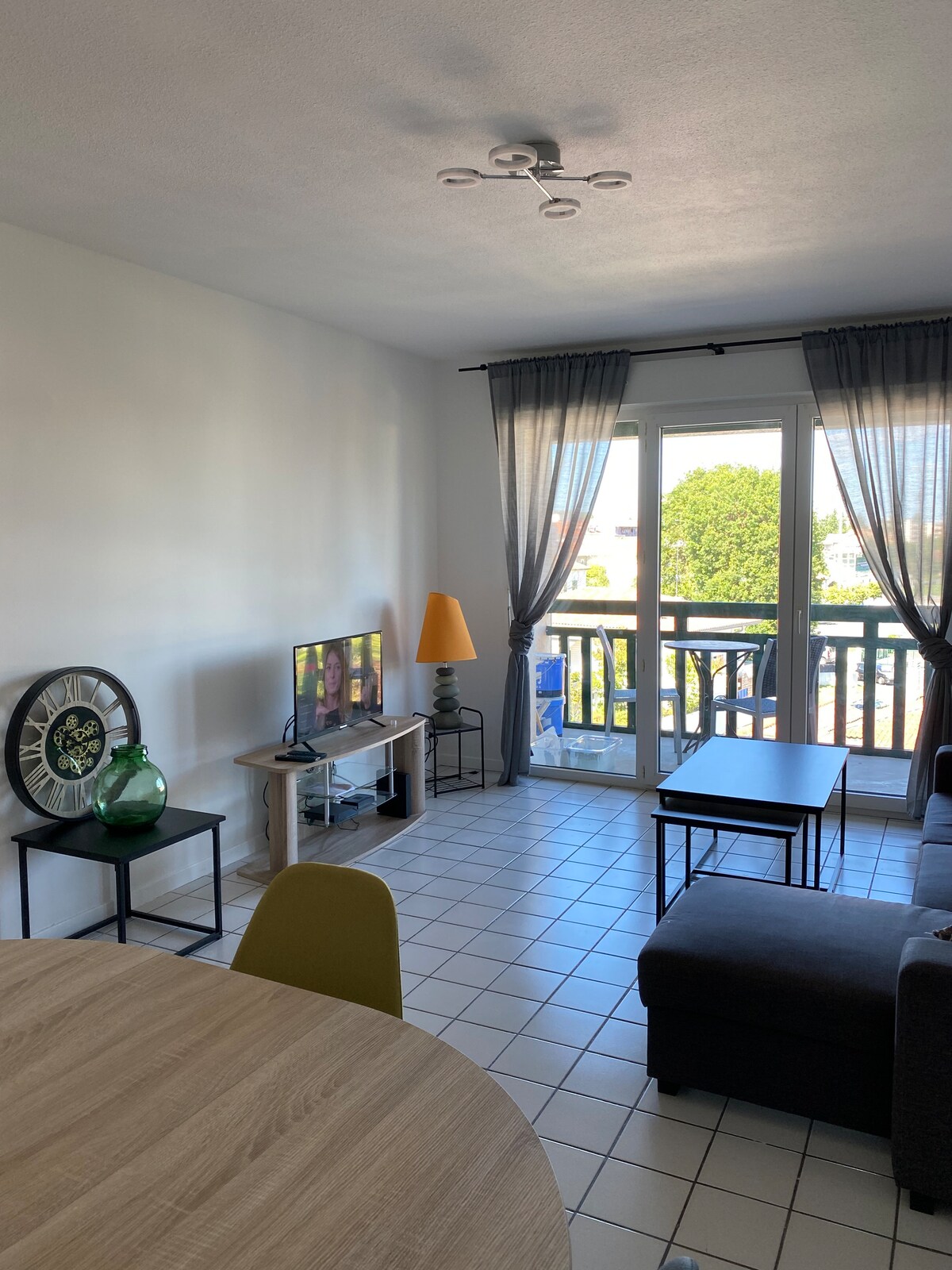 Residencia de alojamientos adosados en Anglet, instalados alrededor de la piscina compartida. Apartamento dúplex para 4 (hasta 6 personas con cama supletoria en sala de estar). estacionamiento privado N° 77 . Le proporciono todas las sábanas y toallas de forma gratuita.