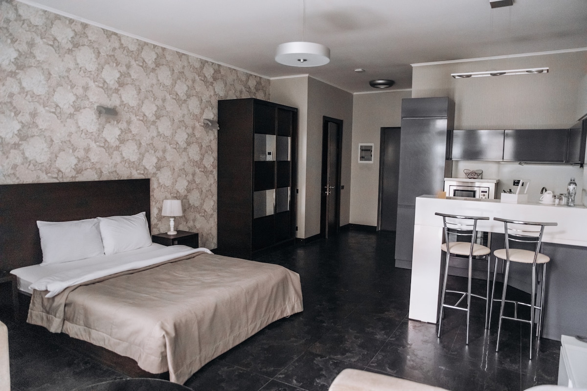 Hola, compañeros de viaje. Os ofrecemos un nuevo apartamento tipo estudio en un edificio residencial de nueva construcción. La reforma se terminó a finales de mayo de 2019. Equipado con electrodomésticos y servicios, el apartamento cuenta con TV de pantalla ancha, aire acondicionado, sofá cama adicional en una sala de estar y un balcón para relajarse. Te esperan comodidad y un ambiente acogedor, detalles especiales para estancias largas y una cálida bienvenida. De viajero a viajero, espero que disfrutes de tu estancia.