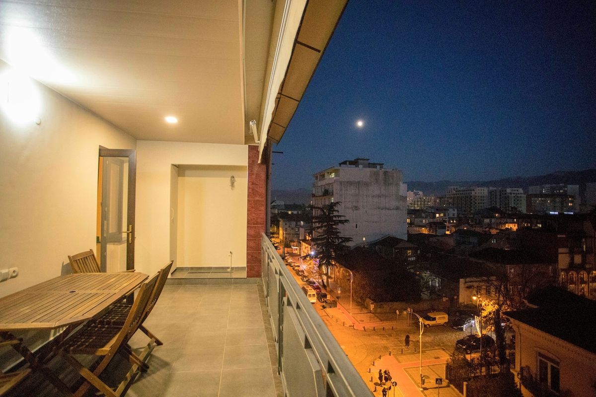 Disfrute de unas vacaciones con estilo en el centro de la ciudad. Casa nueva, piso alto en el centro de la ciudad con una hermosa vista de las montañas nevadas, el mar y la ciudad. Abajo se encuentran los mejores restaurantes de Adjaria. El apartamento es luminoso, con ventanas panorámicas, un gran balcón con una acogedora zona de estar donde se pueden ver las puestas de sol más hermosas de Batumi.