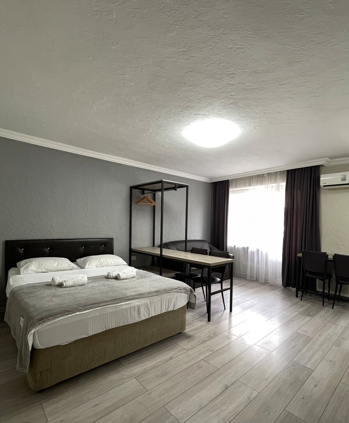 The apartment (new building) is located in the center of the old town. All the sights are in a couple of minutes walk: park, boulevard, square ........The windows look out to the courtyard, which allows you to enjoy the silence, being in the heart of Batumi. You can see the tower of Sheraton from the windows. The apartment is sunny, two separate bedrooms, studio hall. A large family of 6 people can live freely and without constraint.
