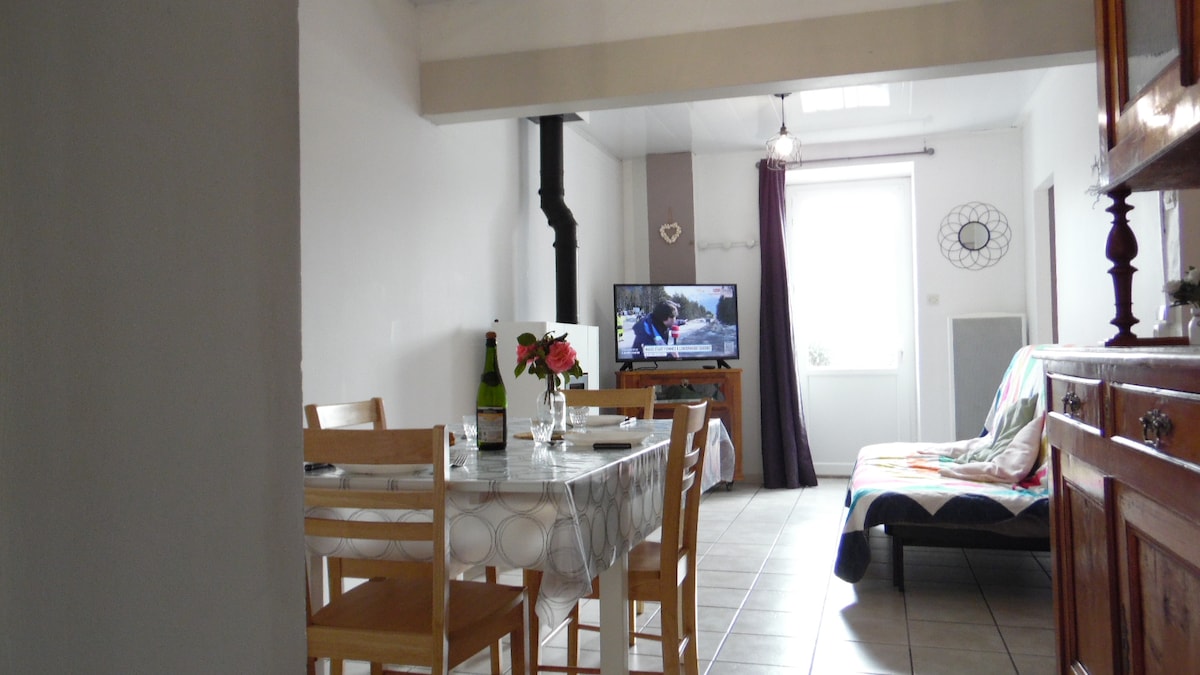 Dependencia de la casa de campo del siglo XIX recién renovada y convertida en casa independiente. Un estilo único en el corazón de un entorno verde ,perfecto para un retiro en plena naturaleza . Pequeño jardín privado y acceso común gran jardín con animales de la granja y huerta. Todo situado en una aldea tranquila. A 5 minutos de las tiendas de alimentos , restaurantes y creperías A 25 minutos de las playas en auto. Rutas de senderismo por los alrededores . Zoológico y golf en el municipio vecino . A 25 minutos de Lorient.