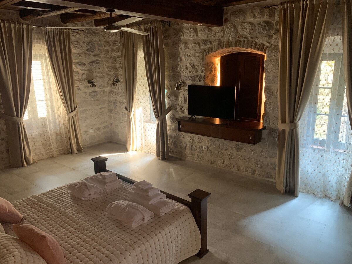 El pequeño hotel boutique familiar de 4 estrellas Capitano está ubicado en el centro histórico de la pequeña ciudad costera de Kamenari, en el corazón de la bahía de Kotor, frente al pequeño puerto de ferry, lo que lo convierte en un punto de partida perfecto para explorar la bahía. El hotel ofrece alojamiento con desayuno, estacionamiento privado gratuito, conexión Wi-Fi gratuita a través de la propiedad, una piscina al aire libre y una pequeña bodega. El hotel ofrece un desayuno bufé y a la carta. Todas las habitaciones tienen vistas al mar. Esta habitación superior es de 47 m2 + terraza.