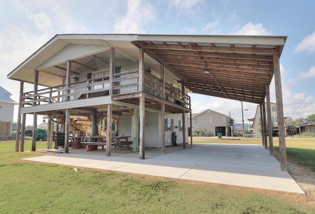 Esta casa se encuentra en 0,6 acres en una calle tranquila y sin salida. Está elevada sobre pilotes, lo que permite una bonita zona de aparcamiento/reunión debajo de la casa (y medio baño), y dos plantas de espacio habitable arriba. La propiedad da a un canal, donde se puede pescar desde la orilla o mirar hacia arriba desde la terraza trasera. La terraza delantera tiene su propia vista tranquila y arbolada. Ubicada a aproximadamente 1 milla de la playa y a 3 millas de los restaurantes locales.