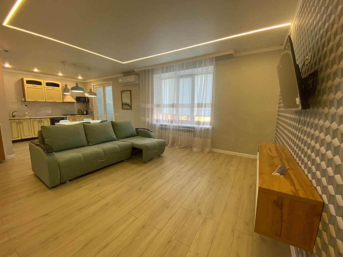 Un apartamento elegante en la ciudad de Uralsk. El departamento cuenta con todas las comodidades para una estadía cómoda. Wifi, aire acondicionado, TV inteligente, ropa de cama siempre limpia, etc. No más de 2 personas. No hay alquiler de fiestas. Un paquete completo de documentos para viajeros de negocios.