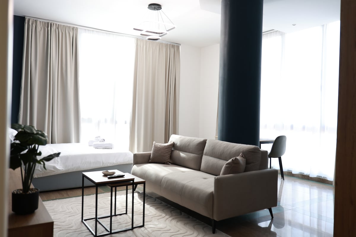 ¡Bienvenido a ✨Moonchild Suites✨, tu elegante refugio en Durrës! Ubicado en la playa de Iliria, a solo 50 metros del mar y a pocos pasos del emblemático Hotel Adriatik, este elegante y totalmente equipado apartamento es ideal para una relajante escapada costera. Diseñado pensando en la comodidad y el estilo, cuenta con un interior moderno y luminoso, un amplio balcón privado y todo lo que necesitas para una estancia perfecta. Perfecto para parejas, familias o trabajadores remotos que buscan relajarse, explorar o trabajar junto al mar.