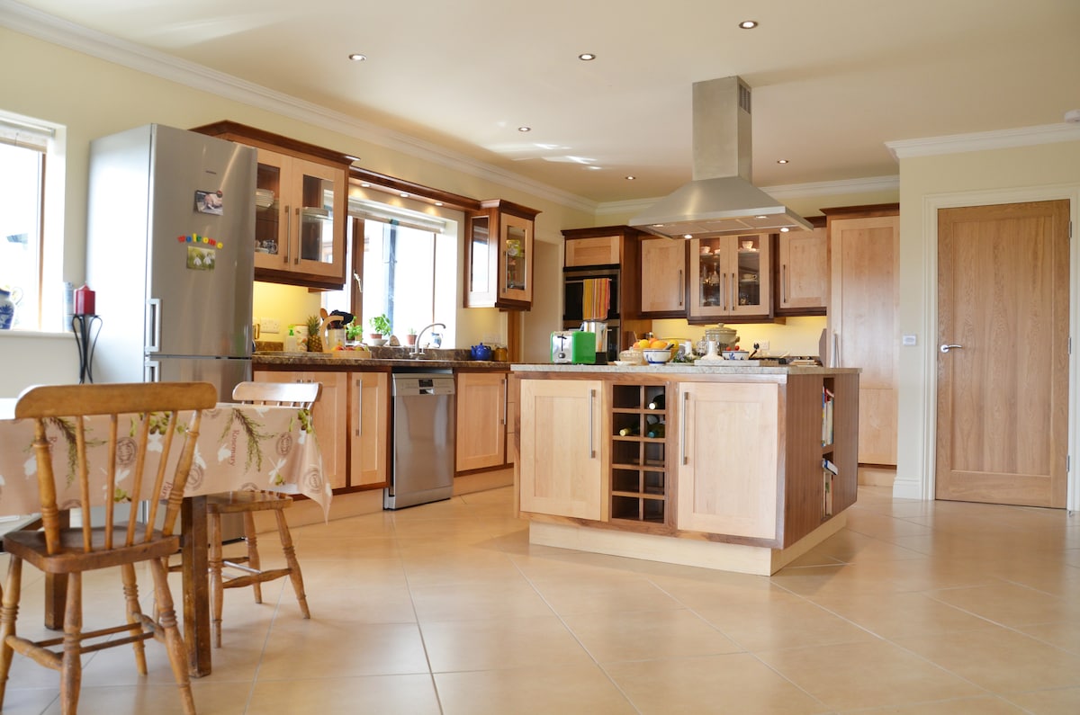 La casa es un bungalow adosado de 2 dormitorios unido a la propia casa del anfitrión. Todavía está totalmente separada y es privada para los huéspedes, con sus propias entradas. Recientemente se ha renovado con un alto estándar moderno. A solo 15 minutos en coche del centro de la ciudad de Killarney por una carretera rural. A solo 20 minutos del INEC y del Parque Nacional de Killarney. Atendemos a los niños proporcionando silla alta, cuna de viaje con colchón y sábana ajustable y monitor de bebé. Es muy espacioso y cómodo para tus vacaciones.