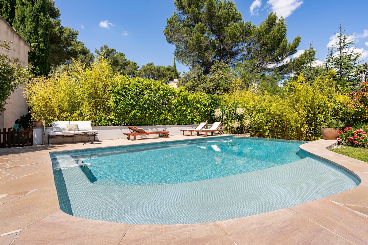 Casa acogedora con aire acondicionado wifi piscina grandes terrazas sombreadas jardín cuidado, situada en el parque nacional de Sainte Victoire al sureste de Aix-en-Provence que ofrece un amplio espacio de naturaleza a las puertas de Aix-en-Provence. Casa rodeada de 5.000 m ² de vegetación, tranquila sin frente ideal para descansar con los amigos o la familia. situada a 10' de Aix-en-Provence 40' de Marsella a 1 hora de la Camarga 40' de Cassis. Permite descubrir toda la zona. Autopistas cercanas.
