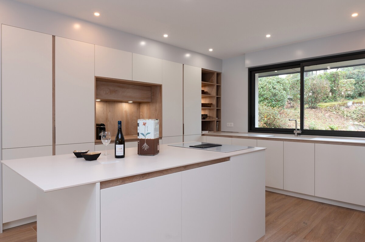 La casa, situada en una propiedad de 1,1 hectáreas, se encuentra a 1,5 km de la playa más cercana, a 2,5 km de una base náutica y del pueblo de Baden con sus tiendas, golf y centro ecuestre. El embarcadero para la Isla de los Monjes está muy cerca y hay nuevas rutas de senderismo a pie o en bicicleta cerca.