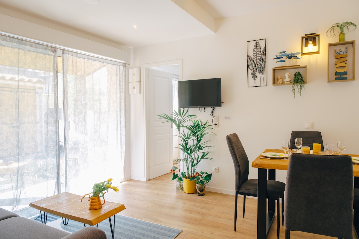 Apartamento de tipo T2 con clasificación 2★, renovado y decorado en 2024. Este apartamento independiente está situado al fondo del jardín de una casa típica de Burdeos y ofrece tranquilidad, luminosidad y comodidad. Ideal para relajarse después de un día en Burdeos, recibe a parejas, amigos o familias con dos hijos. Situado en Bègles, a las puertas del centro de Burdeos, combina practicidad, intimidad y tranquilidad. No apto para personas con movilidad reducida.