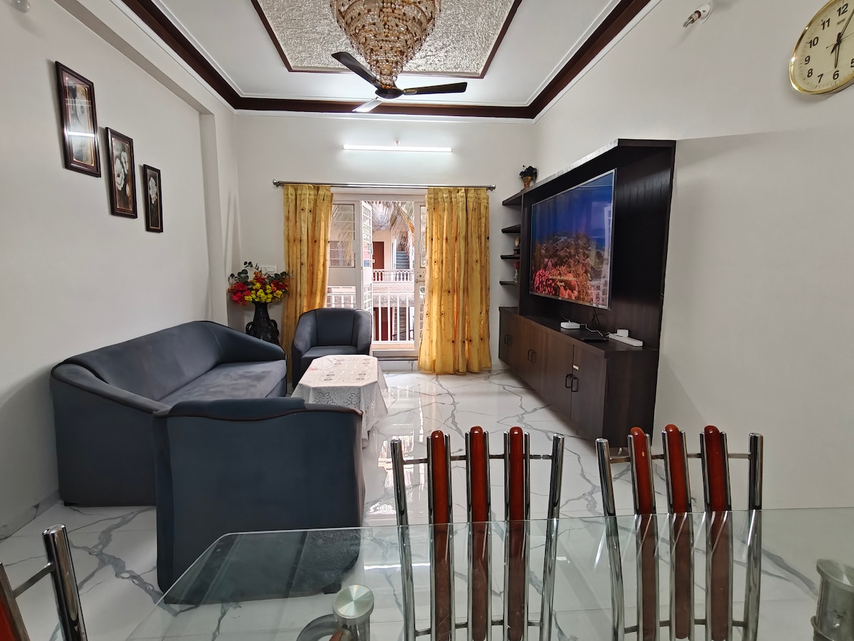 Convenientemente ubicado en la autopista Pune Bangalore en Vidyagiri, Dharwad, KT. Nuestro espacioso apartamento de 2 dormitorios con 3000 pies cuadrados de espacio puede alojar cómodamente de 5 a 6 huéspedes. Disfruta de una casa totalmente amueblada, limpia y espaciosa, y accesible a plataformas de entrega de alimentos fáciles. ¡Elíjanos en lugar de hoteles para disfrutar de una estancia cómoda y agradable con mejor privacidad!