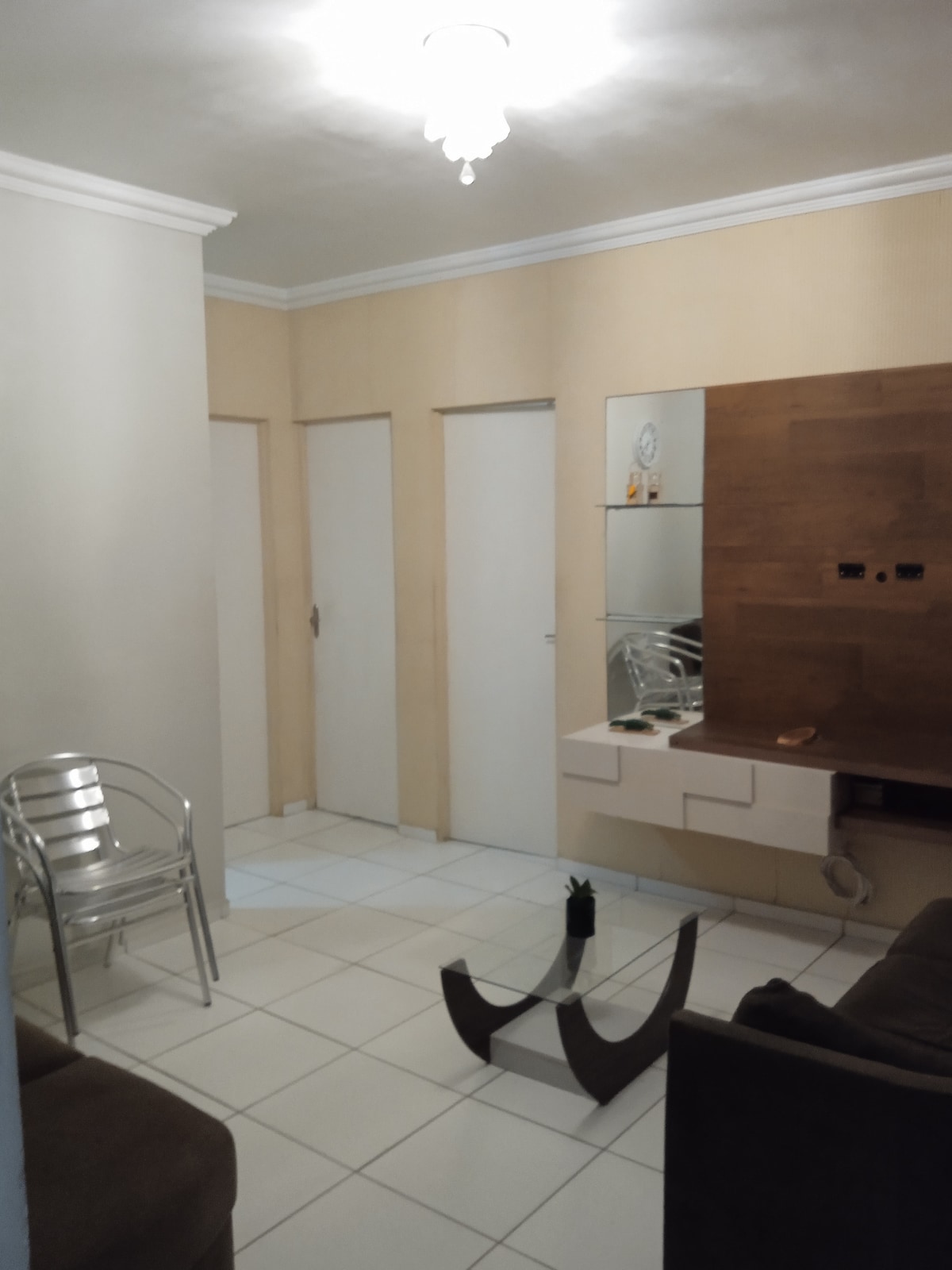 Apartamento completo, 02 dormitorios (01 suite), sala de estar, 01 baño social, cocina (contiene lavadora y secadora, estufa, heladera, licuadora, cafetera, batidora, ollas, vajilla, cubiertos, plancha eléctrica). Condominio con piscina, cancha, 2 parques infantiles, 2 salones de fiestas, 1 gimnasio y 1 plaza de aparcamiento. Cerca de 2 centros comerciales y 2 supermercados. Condominio tranquilo, con seguridad las 24 horas. Servicios incluidos: Wi-Fi, gas canalizado, agua, energía, ducha eléctrica y aire acondicionado en la suite.