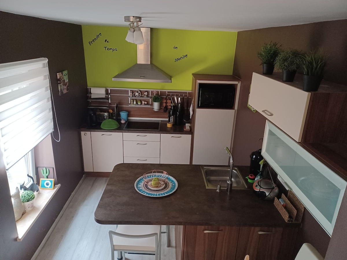 Apartamento nuevo con el encanto de la madera y la arcilla, la clave de los bosques le da la bienvenida en un ambiente acogedor y cálido. Lo hemos acondicionado con mucha atención para satisfacer sus expectativas y su comodidad. Situado en una calle muy tranquila, pero cerca del centro del pueblo y del inicio de los paseos señalizados.