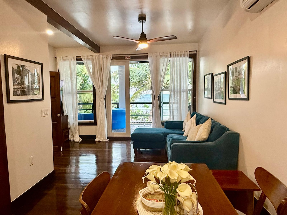 Disfruta de impresionantes vistas al mar sin obstáculos desde nuestro apartamento frente a la playa. Este moderno apartamento de dos dormitorios y dos baños está justo en el mar Caribe, enclavado en el corazón del Blu Zen Resort en North Caye Caulker. A solo 15 minutos a pie de The Split, con servicio de traslado incluido a la isla sur. Disfruta de comodidades prácticas, wifi, electrodomésticos de acero inoxidable, etc. El amplio balcón ofrece el lugar ideal para ver el amanecer. Alójate en el único centro vacacional de lujo de Caye Caulker para una escapada inolvidable.