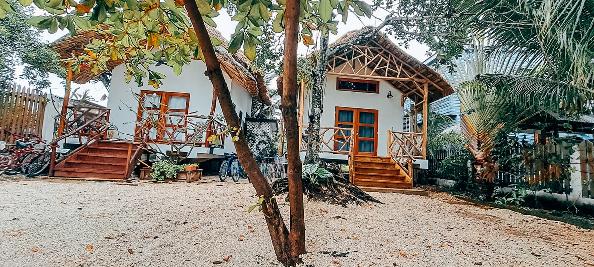 Esta pequeña cabaña es luminosa y fresca, ubicada en una zona residencial tranquila de Caye Caulker en nuestra propiedad llena de árboles. Equipada con cafetera/tetera, mininevera, aire aire, ventilador, hamaca, wifi, agua potable ilimitada, Smart TV con Netflix y, lo mejor de todo, ¡BICICLETAS incluidas! Barbacoa y mesas de picnic en el patio que se comparte con nosotros y con cualquier otro huésped. Tenemos cinco alquileres en nuestra propiedad. Vivimos en el lugar con nuestras dos hijas, dos perros y dos gatos.