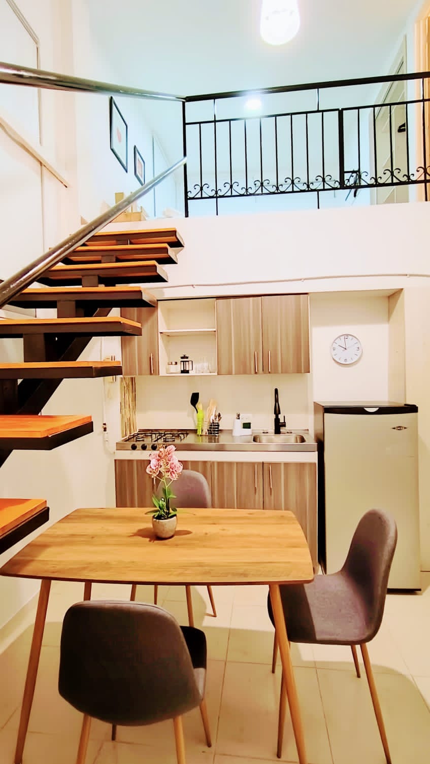 Es un lugar creado y diseñado para que nuestros huésped sientan comodidad, paz y tranquilidad. cuenta con una vista espectacular se encuentra en la terraza por lo tanto llega una brisa muy refrescante contamos con mesas por si desea salir a cenar, desayunar o a trabajar... ¡es un lugar muy mágico que de seguro lo enamorara¡ El aparta estudio es de dos ambientes en el primer ambiente esta la cocina, sala y comedor y en segundo: la habitación con cama doble y baño realmente es muy cómodo