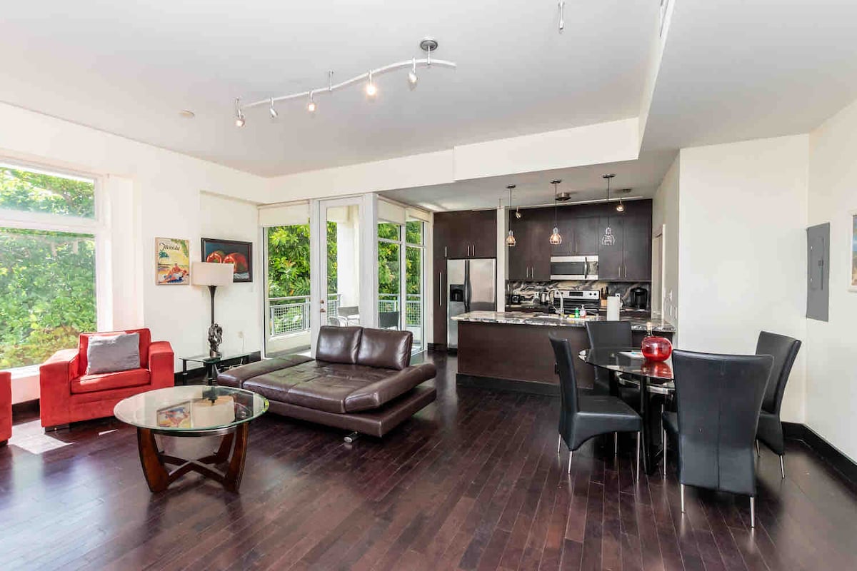 Entire luxury condo at Quadro in the Miami Design District. Fully furnished & equipped - Free parking, coffee, Wi-Fi & cable. The building features resort-style amenities in the 6th floor including a fitness center with a yoga/spinning studio, a lounge with co-working/conference areas & a game room, an outdoor dining area with a summer kitchen & BBQ's, a pool with cabanas overlooking Biscayne Bay. 10-min drive to Miami’s iairport, 15-min drive to Miami Beach. Walk to Wynwood and Midtown.