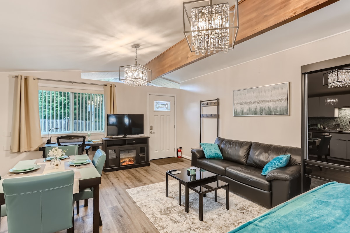 Casa de campo moderna en el lago Sammamish: 2 dormitorios/2 baños con aire acondicionado y chimenea de gas. Ambas habitaciones cuentan con edredones y almohadas de felpa. Disfruta de pisos de madera, una cocina bien equipada con electrodomésticos nuevos, lavadora/secadora, comedor para 6 personas, sofá cama, TV de 55" y cafetería. Relájate con una cena con vista al lago, navega en kayak por la costa o explora el sendero del lago Sammamish justo afuera de tu puerta. ¡Los perros bien educados son bienvenidos!