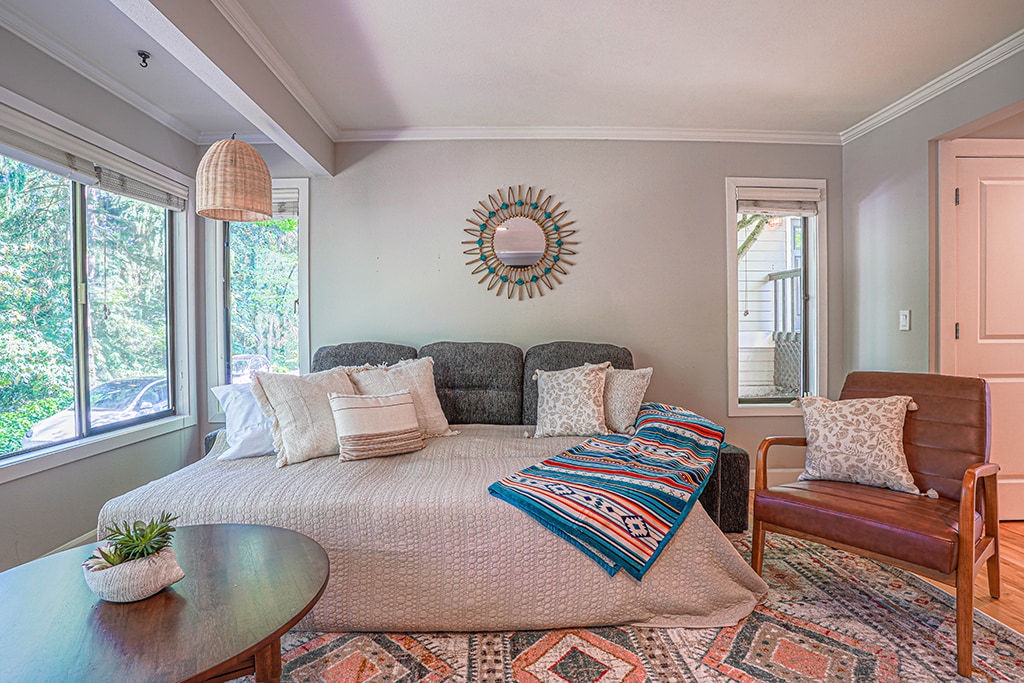 Te damos la bienvenida a la vida de lujo en el centro de Bellevue. Este elegante ático de 2 dormitorios y 2 baños ofrece una escapada urbana de primer nivel con ventanas del piso al techo que enmarcan el espectacular monte Vistas del Monte Rainier y amaneceres impresionantes. Diseñado para la comodidad moderna y la vida de primer nivel, el espacioso plano de planta abierto incluye un sofá plegable para huéspedes adicionales, por lo que es ideal para viajeros de negocios, familias o escapadas sofisticadas. Cada detalle refleja estilo, comodidad y exclusividad. Pregunta por un descuento.