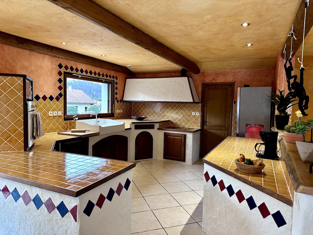 En el corazón del macizo del Alto Jura, en una aldea tranquila, a 900 m de altitud, pequeño castillo de 100 m², completamente restaurado por dentro y por fuera, con todas las comodidades, sin vecinos. Salida de rutas de senderismo desde el alojamiento. En el jardín hay una pequeña dependencia donde se ha instalado un jacuzzi para que pueda disfrutar de momentos de relajación. Venga a descansar en este alojamiento atípico Con garaje cerrado para su coche, moto, bicicleta , equipado con una toma de carga lenta para vehículos eléctricos.