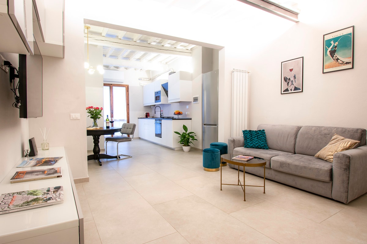 Disfruta del encanto de Florencia en nuestro impresionante apartamento de diseño de 100 metros cuadrados (1000 pies cuadrados), ubicado en Oltrarno, la zona más vibrante y auténtica del centro histórico, recientemente apodado el «barrio más cool del mundo» por Lonely Planet. Este refugio ideal te permite sumergirte en la vida local mientras permaneces a poca distancia a pie de la estación de tren y de todas las atracciones principales. El apartamento tiene capacidad para cuatro personas (dos camas dobles), por lo que es perfecto para parejas o grupos pequeños.