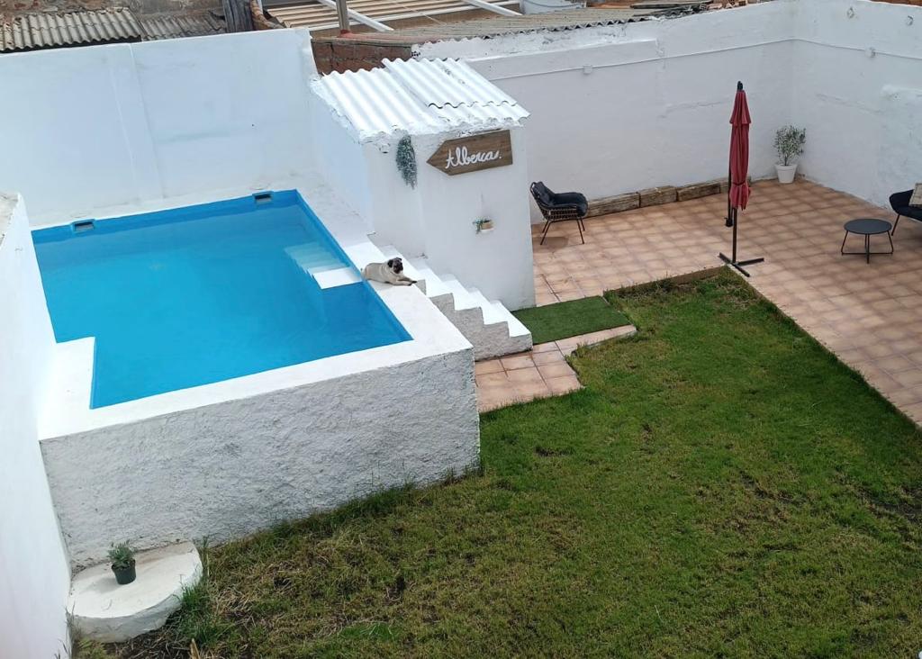 Casa Alba es un oasis de tranquilidad, ¿quieres saber más? El corazón de la casa está en el patio con su magnífica Alberca. Allí podrás pasar el día sin más preocupación que la de disfrutar del sol de La Mancha. Su amplio patio con césped, harán que puedas pasar un día de baño y barbacoa sin límites. En la zona del comedero tenemos espacio para que puedas disfrutar con los tuyos de esos manjares. Y para descansar, contamos con 5 amplias habitaciones. Un total de 5 camas dobles y una individual.