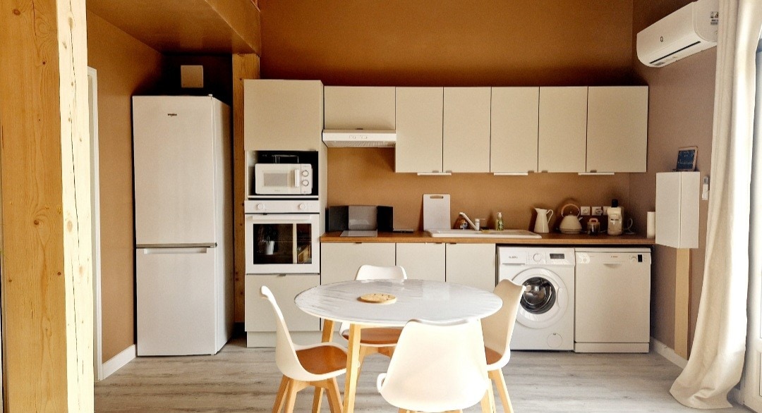 Alojamiento situado junto a nuestra casa (antigua granja), en un entorno verde impregnado de poesía, con vistas a los Pirineos. Pueblo accesible a pie (panadería, supermercado, restaurante, pistas deportivas, peluquería y esteticista, centro médico). Posibilidad de pasear por las laderas y bosques de los alrededores. Sud Landes, cerca de Bearne, el País Vasco y España. Océano (Hossegor) y Bayona a 30 min, Biarritz a 40 min. Dax y sus termas a 15 minutos. A 800 m de los castillos de Prada y Monbet.