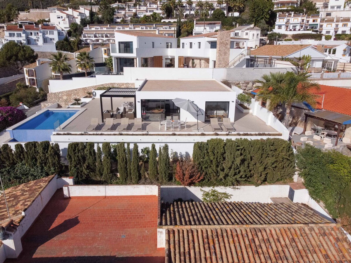 Villa escandinava moderna con barbacoa, piscina y vistas al mar