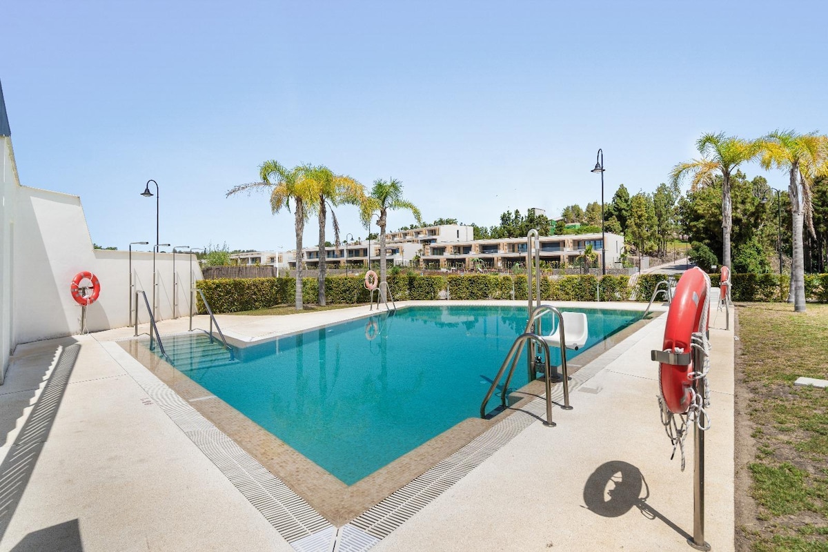 Casa de vacaciones adosada en Puebla Aida, Mijas Golf con vistas a la piscina, al golf y al mar