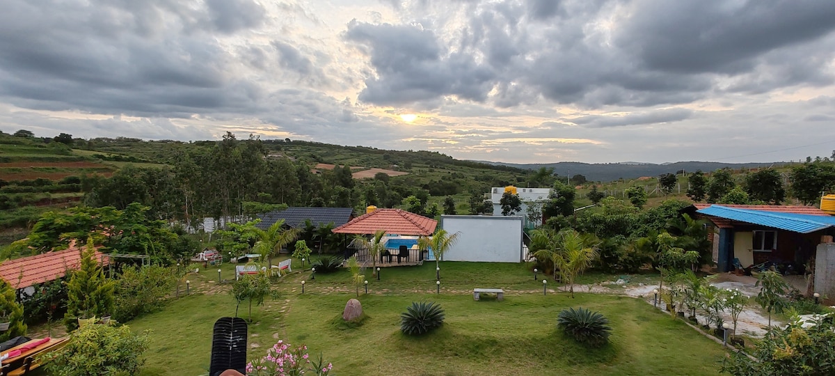 ¡MIRA LA COLINA Y LAS ESTRELLAS! Bienvenido a «Taare», una casa de campo ubicada en la granja Anemane. Relájate en nuestro retiro a las afueras de Bangalore, en el Parque Nacional Bannerghatta. Experimenta un acogedor espacio rústico, despierta con el canto de los pájaros y sumérgete en la vida silvestre; sigue senderos naturales o aprende un poco sobre rewilding y cocina en una estufa de leña, una escapada perfecta del reloj y el caos urbano. Si la vida de la ciudad te atrae, los cafés animados y los centros comerciales están a poca distancia en coche.