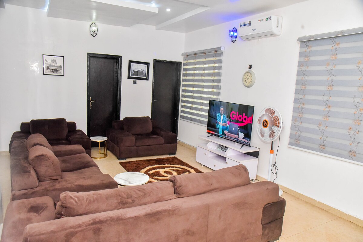 Disfruta de la comodidad moderna en esta suite de 3 dormitorios y 2 baños totalmente solar en el exclusivo Etete G.R.A. Benin City. Ubicada en un complejo seguro y cerrado, esta casa de 5000 pies cuadrados de nueva construcción cuenta con pisos de mármol, muebles lujosos, aire acondicionado, TV inteligente y una cocina totalmente equipada. Disfruta de electricidad ininterrumpida las 24 horas a través de energía solar y generador de respaldo, además de wifi rápido. Cerca de los mejores restaurantes, tiendas y carreteras principales, ¡perfecto para familias o profesionales!