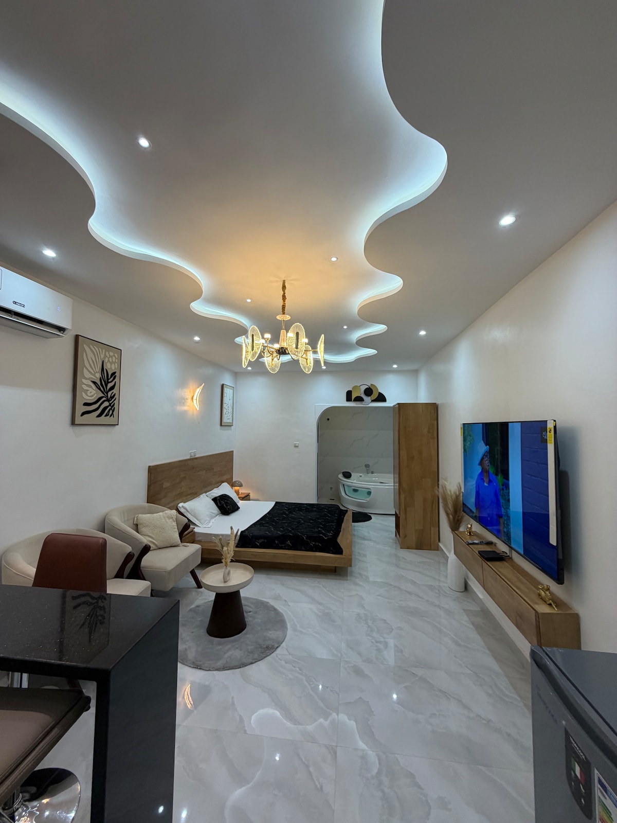 Luxueux studio meublé avec Jaccuzi à Cotonou -Akpakpa à 20 min de l’aéroport ☑️ Jaccuzi américaine ☑️ Cuisine américaine ( très bien équipée) ☑️ Ustensiles de cuisine ☑️ Douche ☑️ Wc suspendu ☑️ Peignoir ☑️ Climatisation ☑️ Télévision Smart Hisense 75 pouces ☑️ Canal+ ‘ YouTube etc … ☑️ Wifi disponible ☑️ Draps et serviettes fournis ☑️ Machine à laver ☑️ Service de nettoyage ☑️ Garage véhicul