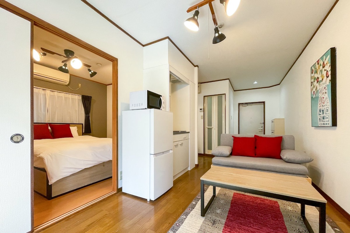 Ubicado junto a la estación de Tezukayama 4-chome. Fácil acceso a Tennoji (15 minutos) y Namba (20 minutos), y a 5 minutos a pie de la estación de Tezukayama. Disfruta de una estancia relajante. Ocupación máxima: 4 huéspedes Ropa de cama: dos camas individuales y dos futones. Tiene lavadora con detergente (compartido). El santuario Sumiyoshi Taisha y Sakai, conocido por sus cubiertos, son de fácil acceso. No se puede cocinar. No hay ascensor. Estancias cortas y largas disponibles Experiencia especial: disfruta conociendo a los lugareños en el bar de al lado.