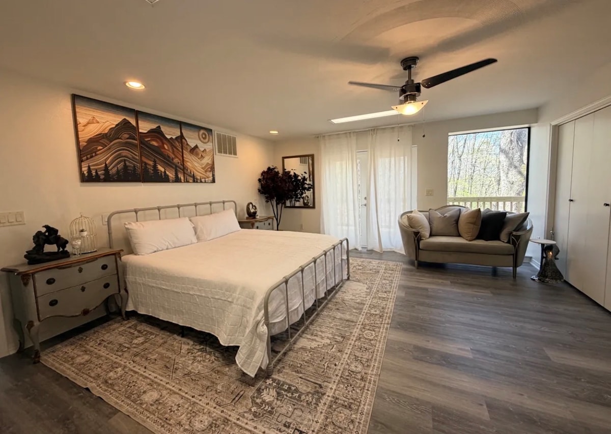 Escápate a High Meadows Oasis, donde lo primero que sentirás es que tus hombros se relajan. Amplio, tranquilo y ubicado cerca de Beaver Lake, este alojamiento está pensado para quienes realmente necesitan un descanso. Camas cómodas, espacios abiertos, aire fresco y nada en tu lista de tareas pendientes. A minutos de Bentonville, del lago y de senderos cercanos que a los huéspedes les encantan. Ven a relajarte. Te lo mereces.