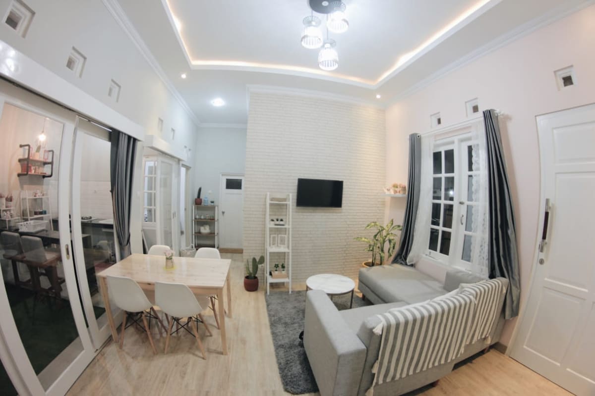 Rumah ini masih baru, selesai dibangun pada Maret 2024. Rumah yang nyaman untuk bersantai dan beristirahat bersama keluarga. Berada dikawasan perumahan, anda dan keluarga dapat merasakan lingkungan yang bersih, asri dan tenang. Di rumah kami, anda dapat menemukan: - 3 Kamar tidur ber-AC - 1 Kamar mandi dengan pemanas air hangat - 1 Kamar mandi standard - Ruang tamu sofabed - Ruang keluarga smart tv 43inch + netflix + WiFi - Dapur - P3K - Teras - Carport untuk 2 mobil