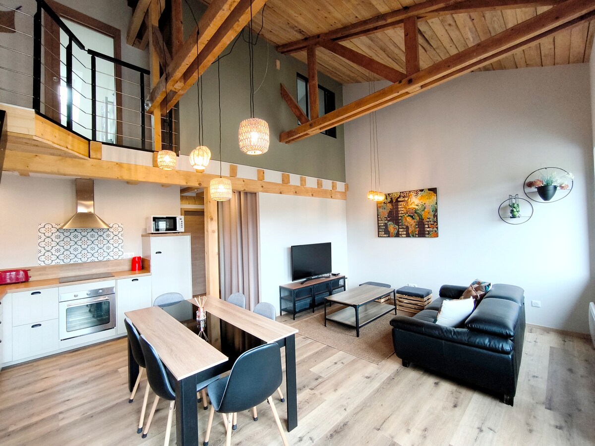 Con una ubicación ideal al borde de los viñedos, este alojamiento dúplex espacioso y con un interior elegante puede alojar hasta 6 personas en excelentes condiciones. Su salón y terraza ofrecen unas vistas impresionantes del viñedo alsaciano y los Vosgos. Bergheim, situado en el centro de Alsacia, fue elegido pueblo favorito de los franceses en 2022. Tendrás a los pies del alojamiento el punto de partida de muchos circuitos que van desde los pueblos vecinos hasta el castillo de Haut-Koenigsbourg.