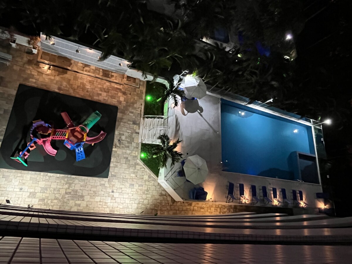 PISO con cocina de reserva y piscina con aire acondicionado Cocina con: microondas, freidora de aire, minibar, cafetera de 3 corazones, mostrador de comedor, secador de pelo, TV, aire acondicionado, wifi de condominio y limpieza diaria; Tiene capacidad para un máximo de 4 adultos (cama tamaño queen + cama individual + dos camas) con la primera ropa de cama incluida (sábanas, toallas de baño y almohadas). Cobertores, partes adicionales cobradas en el momento de la salida. La tarifa NO INCLUYE las comidas.