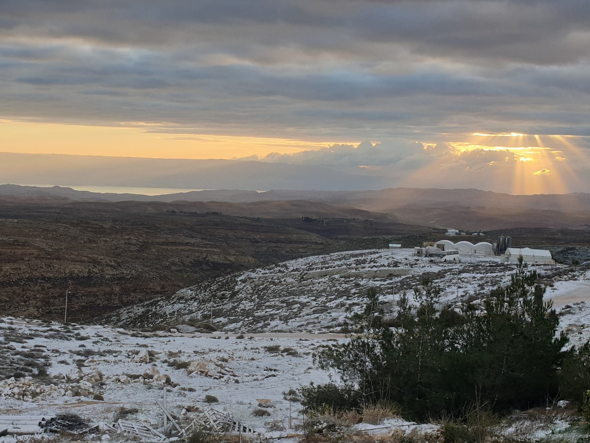 Un B&B de calidad y lleno de luz diseñado con un alto nivel de acabado, situado en la primera línea del Mar Muerto para unas relajantes vacaciones para el cuerpo y el alma. El B&B está bien equipado hasta el más mínimo detalle, y fue construido especialmente para nuestros queridos huéspedes. Cuenta con sala de estar, cocina, baño y un balcón loco + jardín, y en el piso de arriba, una galería para dormir con una cama doble y una ventana al mar, y un enorme balcón hacia el mar y el desierto de Judea. Si llegas con más de una pareja, puedes abrir el piso de la galería a cuatro colchones finos. El lugar tiene estacionamiento, aire acondicionado y todo el equipo para los observadores del Shabat. Puedes salir el sábado por la noche sin costo adicional. Se puede reservar un taller para parejas.