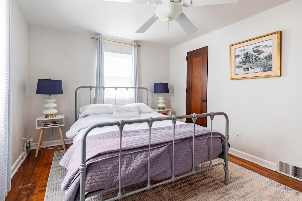 *Solo reservaciones fuera de la ciudad por favor * ¡Alojamiento alegre y elegante de 2 dormitorios a solo 15 minutos del centro de Pittsburgh! Ubicado en un barrio encantador a pocos pasos a pie de tiendas, restaurantes, lugares de culto, Mt. Campo de golf del Líbano y una tienda de comestibles. ¡La casa también está a solo 5 minutos a pie de la línea T, lo que hace que sea fácil entrar y salir del centro de Pittsburgh! 1 cama tamaño king . 1 cama tamaño queen. Sofá cama tamaño queen Televisión inteligente con aire acondicionado . Estacionamiento fuera de la calle. Cerradura inteligente